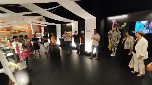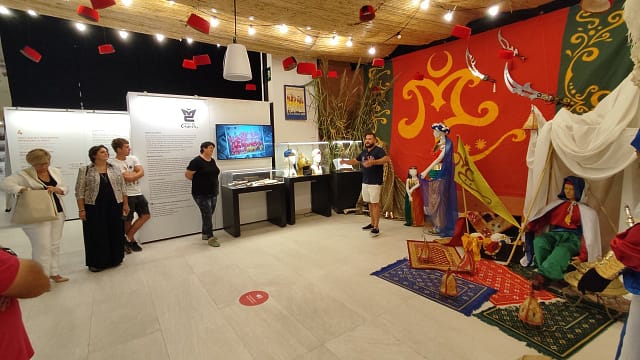 La Vila Joiosa, 6 de octubre de 2022. Las compañías Moros de Capeta y Almogàvers de la Vila Joiosa son las nuevas protagonistas de la exposición “Música, pólvora i desembarc”. La exposición inaugurada el pasado en agosto de 2021, cuenta con un espacio ambientado como un cuartel de fiestas por el que cada tres meses dos compañías festeras de la Vila Joiosa, una mora y otra cristiana, patrocinan para acercarnos sus costumbres, vestimentas, decoración e historia.