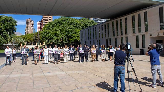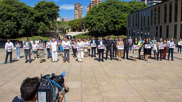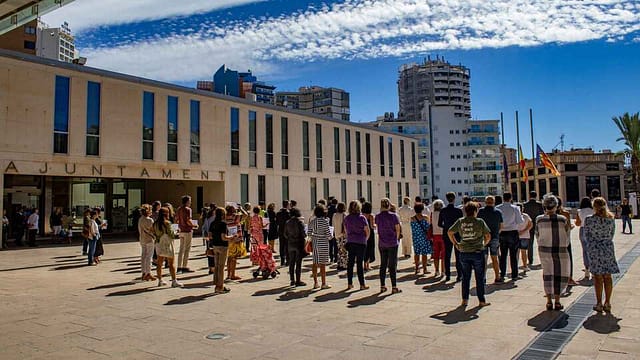 El Ayuntamiento de Benidorm ha celebrado a las 13 horas de hoy una concentración silenciosa de cinco minutos en la Plaza SSMM Reyes de España para condenar el último crimen por violencia machista registrado el pasado 25 de septiembre en Benidorm tras el asesinato de una mujer de 67 años a manos de su marido. El consistorio, además, ha decretado un día de luto oficial que ha comenzado a la misma hora que la concentración, por lo que las banderas ondearán a media asta en los edificios dependientes del Ayuntamiento y en la casa consistorial con crespón.